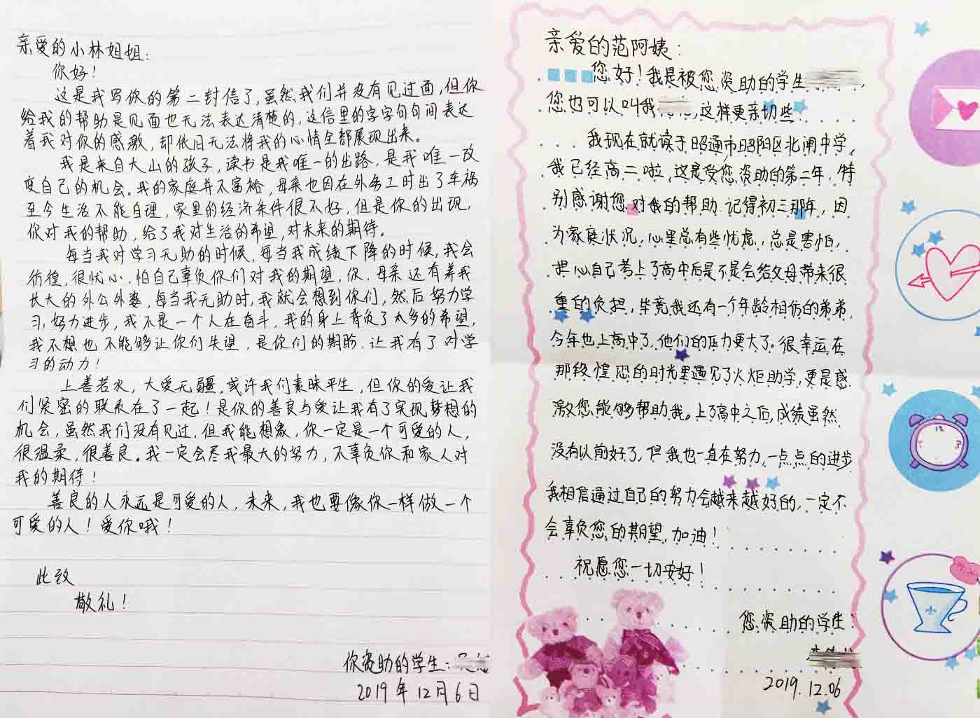 水都沒有喝,馬上放下包,整理孩子們的資料,就開始準(zhǔn)備紅包,準(zhǔn)備發(fā)錢。孩子們把早就準(zhǔn)備好的信遞交給我們,讓我們轉(zhuǎn)交給他們的資助人。他們鞠躬道謝,真摯而純樸。