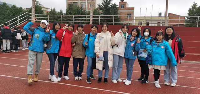 30號早上大概7點(diǎn)我們起來快速吃完早餐就趕著驅(qū)車前往第一站助學(xué)金發(fā)放點(diǎn)--昭陽區(qū)北閘中學(xué)。大概9點(diǎn)半到達(dá)學(xué)校,學(xué)校門口顯眼的橫幅寫著:“凝心聚力新時(shí)代 團(tuán)結(jié)奮斗新征程 以優(yōu)異成績慶祝中國共產(chǎn)黨成立100周年”的激情澎湃的文字,我想也代表了他們團(tuán)結(jié)奮斗不怕艱苦的求學(xué)精神吧!當(dāng)天的溫度大概是7度,但是學(xué)生和一些老師都遠(yuǎn)遠(yuǎn)的從家里趕過來早早集聚在學(xué)校門口迎接我們,看到一張張純真的笑臉和陽光般向上的笑容,深刻體會到滿滿的夾道歡迎感!