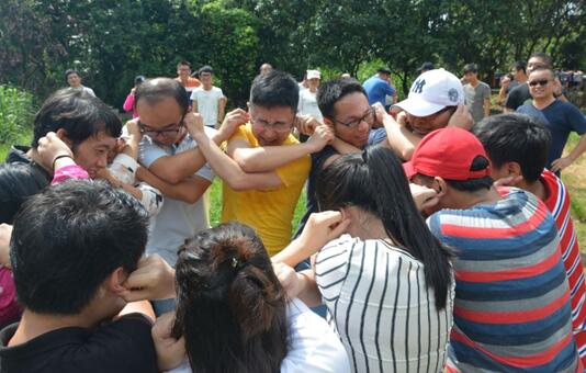 大家圍成一個(gè)圓,后面一個(gè)人雙手放在前一個(gè)人的肩膀上,在教官的指揮下,開始了親情的互動(dòng),為自己親愛的同事拍拍頭,按按肩,掐掐腰,捶錘背....為隊(duì)友放松,充份體現(xiàn)不拋棄,不放棄,更不嫌棄的團(tuán)隊(duì)精神,增進(jìn)彼此的信任和互助。